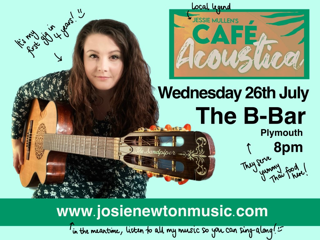 I’ll be performing for the first time in 4 years on Wednesday the 26th July, and it only felt right to return to Jessie Mullen’s ‘Cafe Acoustica’ night at The B-Bar, Plymouth.